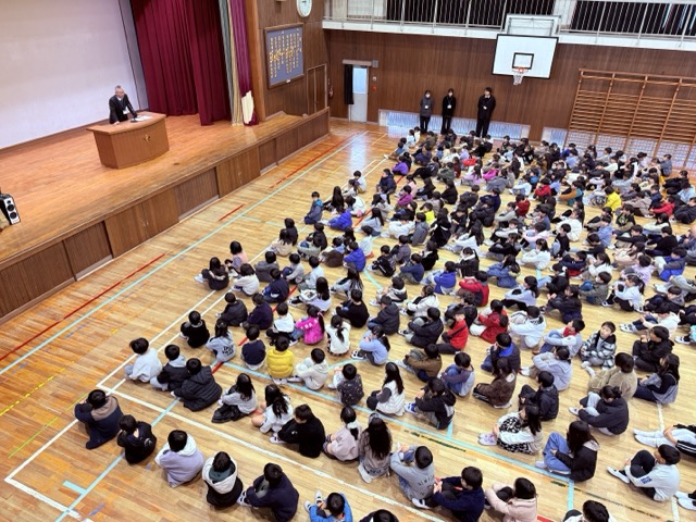 今日は3学期の始業式でした。久しぶりに学び舎に子どもたちの元気な声が帰ってきました。久しぶりに会ったお友達と話をしたり、一緒に遊んだりしていましたね。1時間目に始業式を行いました。担任の先生に導かれて体育館にそろそろと全学年が揃いました。教頭先生の司会のもと、まずは大切な校歌を歌いました。とても声がよく出ていたと思います。2026年、新しい年を迎えてみんな頑張ろう!という思いが伝わってきましたね。3学期は1月は行く、2月は逃げる、3月は去る、と言われます。今の学年の締めくくりとしてまず、この3ヶ月をしっかりと過ごしてほしいと思います。「終わりよければすべてよし。」という言葉があるように、最後は気持ちを込めて終わりたいものです。気持ち一心に、取り組んでくださいね。応援しています。