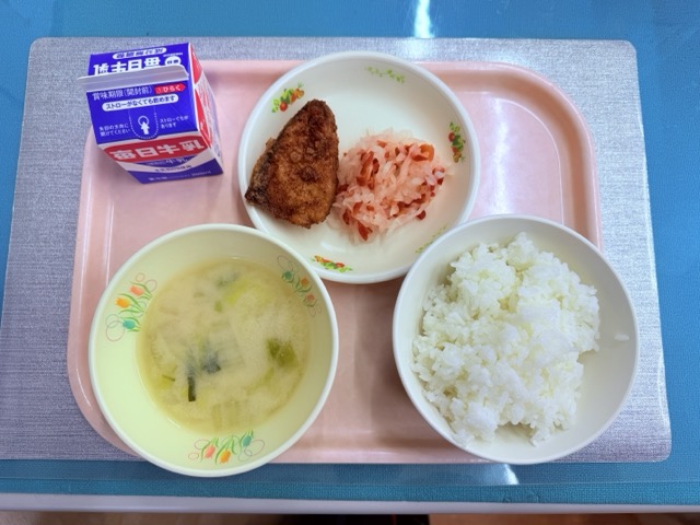 今日は、毎年恒例になってきている、5年生に、お魚の出前授業を受けました。出前授業の後はアジのフライをいただきました。基本的に切り身で提供されましたが、出前授業を受けた5年生だけは丸ごとです!なかなか立派な大きさで、子どもたちもビックリです。いい経験と想い出になったと思います。ごちそうさまでした。