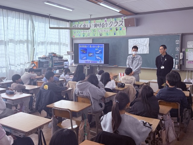お魚教室で出前授業をしていただきました。給食にはアジが提供されました。 〜(1月16日)