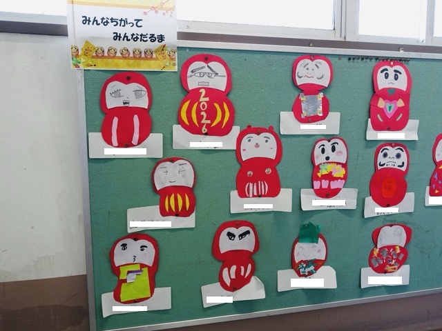 ↑北校舎東側の掲示。みんなちがってみんないい。素敵なだるまさん。
