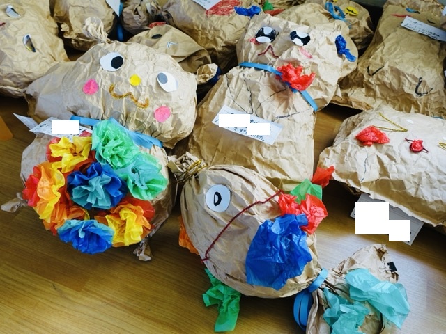 ↑図工・テーマ「くしゃ、くしゃ、ぎゅっ!」。可愛い作品が。