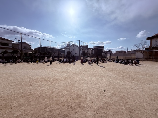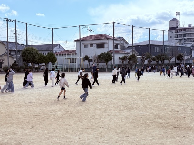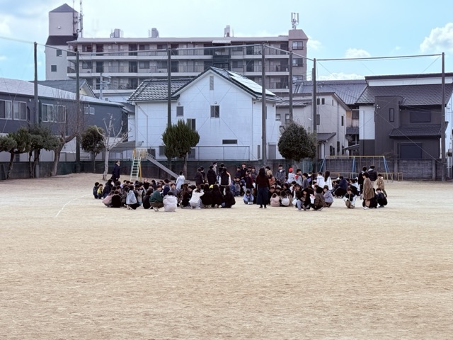 節分の日、寒さを吹きとばせ!暖かな日差しを浴びながら…一生懸命取り組んでいます。 〜1、2、5年生(2月3日)