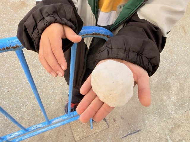 そんな次の日、わずかな雪を子どもたちが集めて遊んでいました。とっても笑顔が素敵でしたよ。やっぱり自然の恵みは癒やされます。少ししかない雪を大事そうに…。