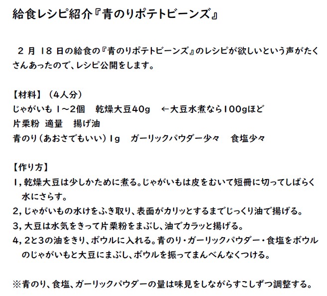 青のりポテトビーンズを作ってみよう!(給食レシピ公開します)
