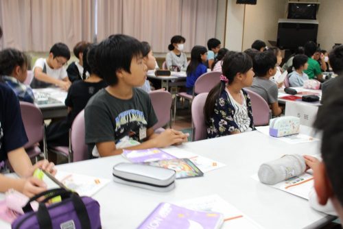 今度は中学年 自分たちが座るところでお茶を飲みます