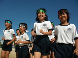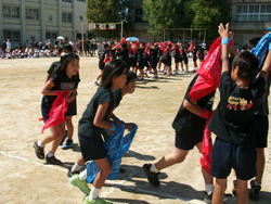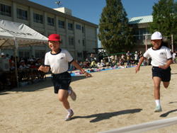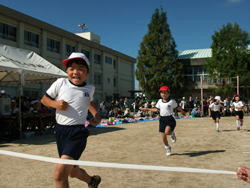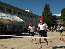 | 小学校の運動会 初めての種目です。 おうちの人たちの声援が背中を押します! |