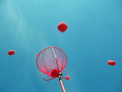 カゴの真下でカメラを構えていると、子どもたちの表情が面白いです!! |