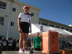 | たくさんのお客さんの前でやや緊張気味な1年生 |