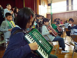 | ↑ 最後は合奏です! 6年生らしい迫力のある演奏を聴かせてくれました!! 手拍子に合わせたボクシングの演技も光っていました(^^) ↑ | |||