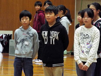 | ↑ありがとう集会のトリはやっぱり6年生 まずは群読“まつりだわっしょい”↑ | ||