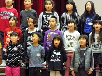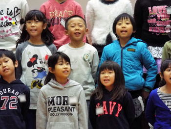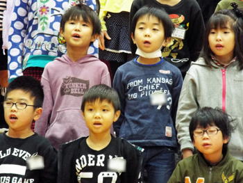 | ↑3年生合唱隊の面々 歌ったのはNHK連続テレビ小説「とと姉ちゃん」の主題歌になっている宇多田ヒカルさんの“花束を君に”です!↑ | ||