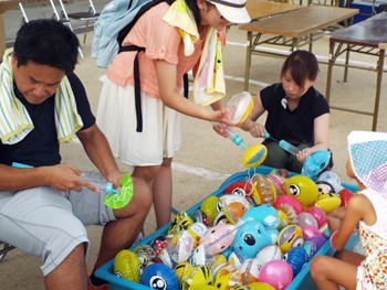 | ↑キャラクターヨーヨーつりは今年初めてのお店です↑ | ↑準備はしか北の子どもたちがお手伝いをしてくれました!↑ | |