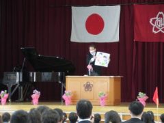 ~歓迎集会~ 投稿日:2022年4月28日2022年5月6日 4月26日(火)に1年生を迎える歓迎集会が行われました。 1年生の子供たちは、プレゼントしてもらった首飾りをかけて、6年生と一緒にドキドキワクワクしながら入場しました。 2年生から6年生からは、手話を交えた「にじ」の合唱で歓迎の気持ちを贈りました。 1年生は、ひな壇に並んで、「ドキドキドン!1年生」の歌を大きな声で歌うことができました。 素敵な歓迎集会となりました。これから友達をたくさん作って楽しい学校生活を送ってほしいと願っています。