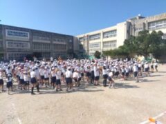 飛沫感染を防止するため、今年度は歌唱や全員での呼びかけを見送りました。