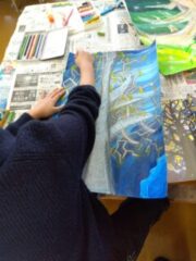 縦割りグループで集まって、下級生から6年生にお礼のメッセージとお手紙をおくりました。