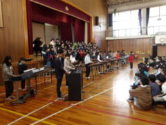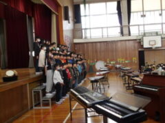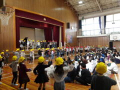 高松小学校、児童&職員全員で、6年生の卒業をお祝いしました。