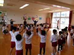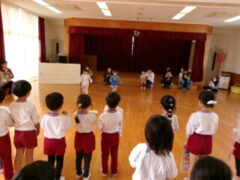 みんなで元気に体操をした後は、玉入れ対決で大盛り上がり!幼稚園児とわさっこ広場の子供たちが一緒にダンスを踊ったり、かけっこでゴールを目指して走ったりと、笑顔いっぱいのひとときでした。