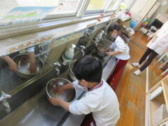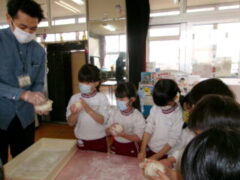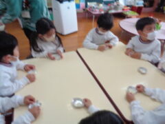 前日に子供たちはもち米を洗い、当日は蒸し器で蒸し始めました。園舎には炊き立てのお米の香りが広がり、子供たちは「いいにおい!」「まだかな?」と何度も様子を見に来ていました。蒸したもち米をひと口食べると、「あー美味しい!もっと食べたい!」と笑顔があふれました。