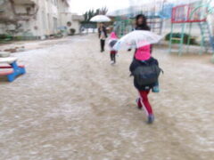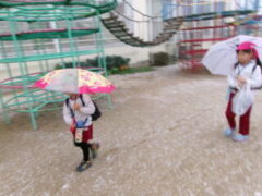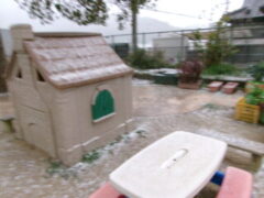 そして迎えた翌朝。 登園時間に合わせるように、空から雪がふわりと降ってきました。 「わぁ〜雪や!雪や!」と、どの子も大喜び。園庭に響く歓声に、私たちの心まで温かくなりました。