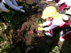 収穫後は、一人ひとりが自分たちで掘ったサツマイモをお土産として持ち帰りました。どの子も大きなお芋を手に、とても嬉しそうな表情を見せてくれました。お家では、きっと美味しい料理に変身することでしょうね。ぜひ、ご家庭でのお話も聞かせてくださいね。