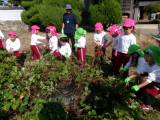 自然の中での発見やふれあいを通して、子供たちの目はキラキラと輝いていました。サツマイモの収穫の日を楽しみにしながら、園に戻る足取りも軽やかです。