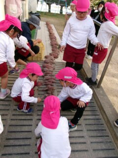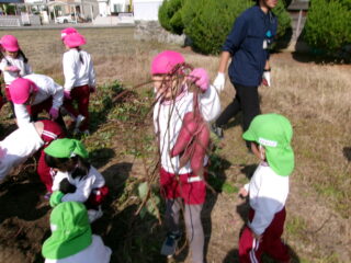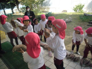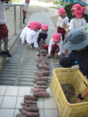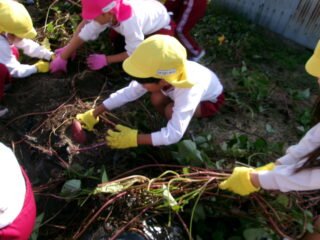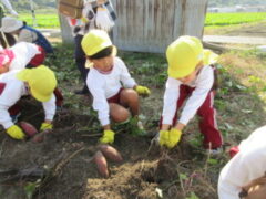 収穫後は、一人ひとりが自分たちで掘ったサツマイモをお土産として持ち帰りました。どの子も大きなお芋を手に、とても嬉しそうな表情を見せてくれました。お家では、きっと美味しい料理に変身することでしょうね。ぜひ、ご家庭でのお話も聞かせてくださいね。