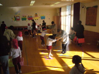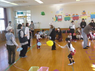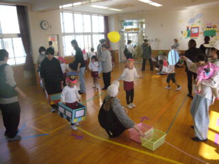 みんなで元気に体操をした後は、玉入れ対決で大盛り上がり!幼稚園児とわさっこ広場の子供たちが一緒にダンスを踊ったり、かけっこでゴールを目指して走ったりと、笑顔いっぱいのひとときでした。