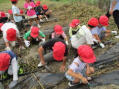 ハルジオンさんでお芋ほり 投稿日:2025年10月20日 5月26日に ハルジオンさんで植えさせていただいたサツマイモ。 大きく生長し、本日 1年生が収穫させていただきました。 とっても大きなサツマイモに大喜びでした。 ハルジオンの方々ありがとうございました。