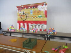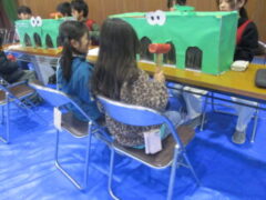 「ワニワニパニック」「キッキングスナイパー」「ナンバータッチ」「射的」「ビー玉転がし」「ダンボールフリスビー」を各グループに分かれて作成し、運営しました。