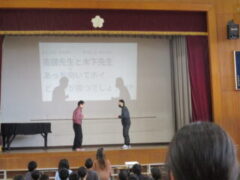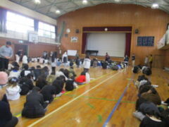 児童会を中心に1年生から6年生のたてわりでグループを作り、グループでジェスチャーゲームやクイズに挑戦しました。