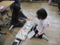 先日、6年生をおもちゃランドに招待しましたが、授業参観後の話し合いの中で、「1年生もおもちゃランドに招待したい!」「2年生ってこんなに楽しいことをするんだよって知ってほしい。」という意見がたくさん出ました。そこで、1年生も招待することに決まりました。「この前のわさっこ祭りのスタンプラリーが楽しかったから、1年生もきっと楽しいと思う。」そんな自分たちの経験をもとに、6年生のときとは違い、「1年生だったらどうかな?」と相手のことを考えながら準備を進めていました。前もって1年生の教室へ宣伝に行き、今回の昼休みには、たくさんの1年生が遊びに来てくれました。みんなで考えた“スタンプラリー作戦”は大成功。「このお店、まだ行ってないから行きたい!」「全部コンプリートしたよ!」と、うれしい声がたくさん聞こえてきました。相