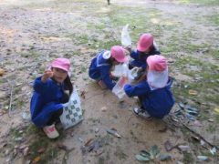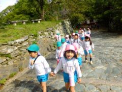 たくさんの宝物を手に持って、幼稚園まで歩きましょう。帰りはみんなの大好きな冒険道を通って帰りますょ!