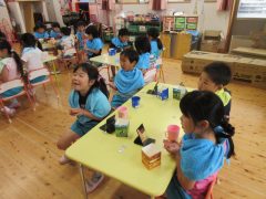お家の方が作って下さり、すみれ組さんは、朝から「おなかすいた。お弁当食べたい!」と言っていましたよ。お弁当があることで、気持ちも上がるようですね。♪ ありがとうございました!