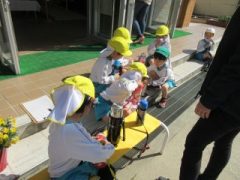 園舎は全て足場に囲まれ、ネットが張られている中での生活でしたが、2月の下旬にようやく、全ての囲いが外され、園舎も光が差し、明るくなりました☆彡