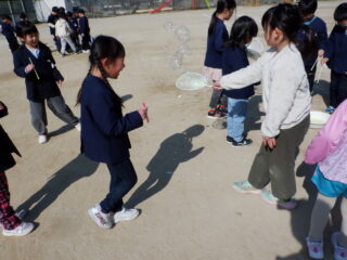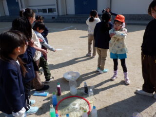 1,2年生の、いろいろなシャボン玉作りに参加させてもらいました。