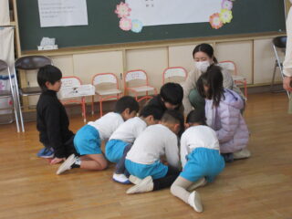 結局、成功とはいかなかったようですが、対話しながら、試行錯誤しながら、工夫し繰り返し試すこと。園児もそのやりとりに立ち合い、同じ一員となって思いに馳せていたのではと思います。不思議や面白さに出会う機会が、子供たちの遊びの中にたくさん溢れていることを願っています。今日の経験ややりとりも、いつの日か繋がっていくことと思います。