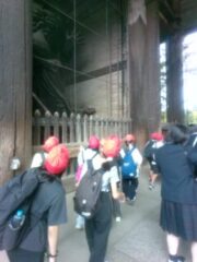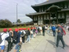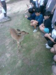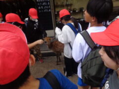 奈良公園に到着しました。子どもたちは、たくさんのかわいい鹿や大仏の大きさに驚いていました。ラッキーなことに空いていたので、鼻の穴は全員通ることができました。白銀屋で、お弁当を食べたあと、買い物を楽しみました。