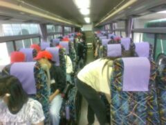 映画村で、昼食をとってからグループ行動でアトラクションや寺子屋体験を行いました。予定の時刻より少し早い14時50分に和歌山へ向けてバスが出発しました。