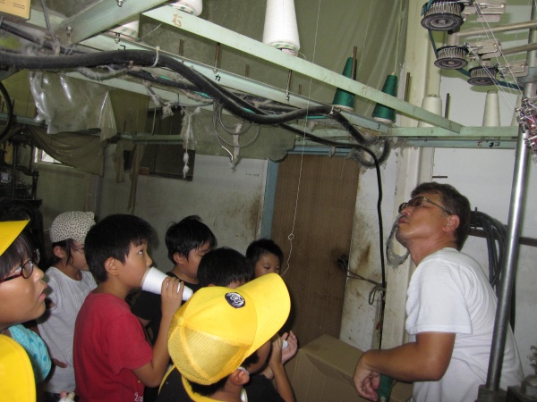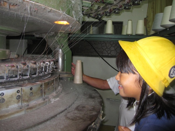 メリヤス工場の見学! 投稿日:2015年9月3日 今日、メリヤス工場の見学に行きました。 小さな針が1600本もかかっている機械を見てびっくり!! きれいなメリヤス生地が、くるりくるりと出来上がっていきました。 みんなのリクエストで緑と赤の糸を織り込んだ生地も作ってもらいました。